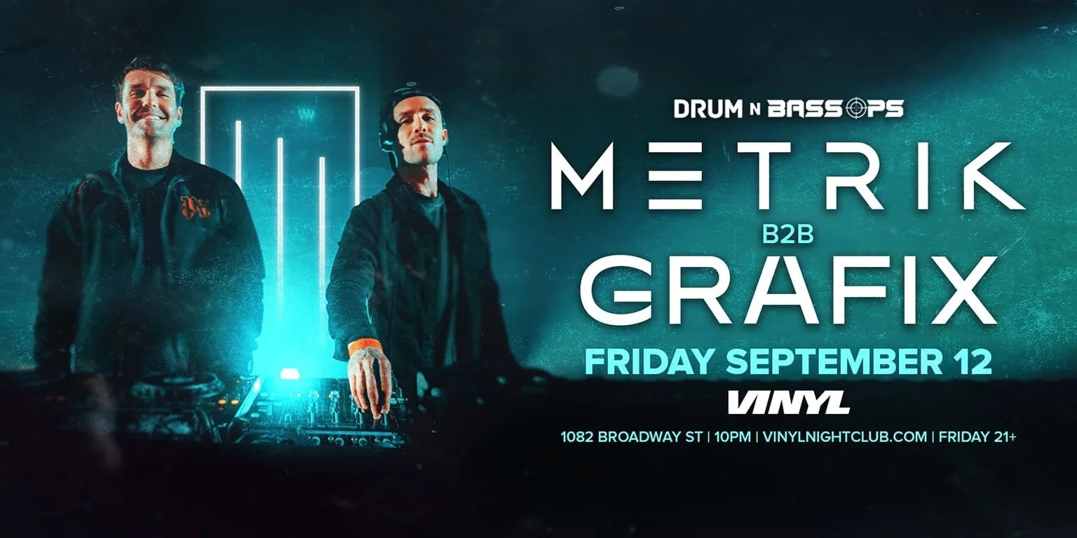 DnB Ops: Metrik b2b Grafix Friday, September 12, 2025 10:00 PM Saturday, September 13, 2025 2:00 AM Club Vinyl (map) Google Calendar ICS