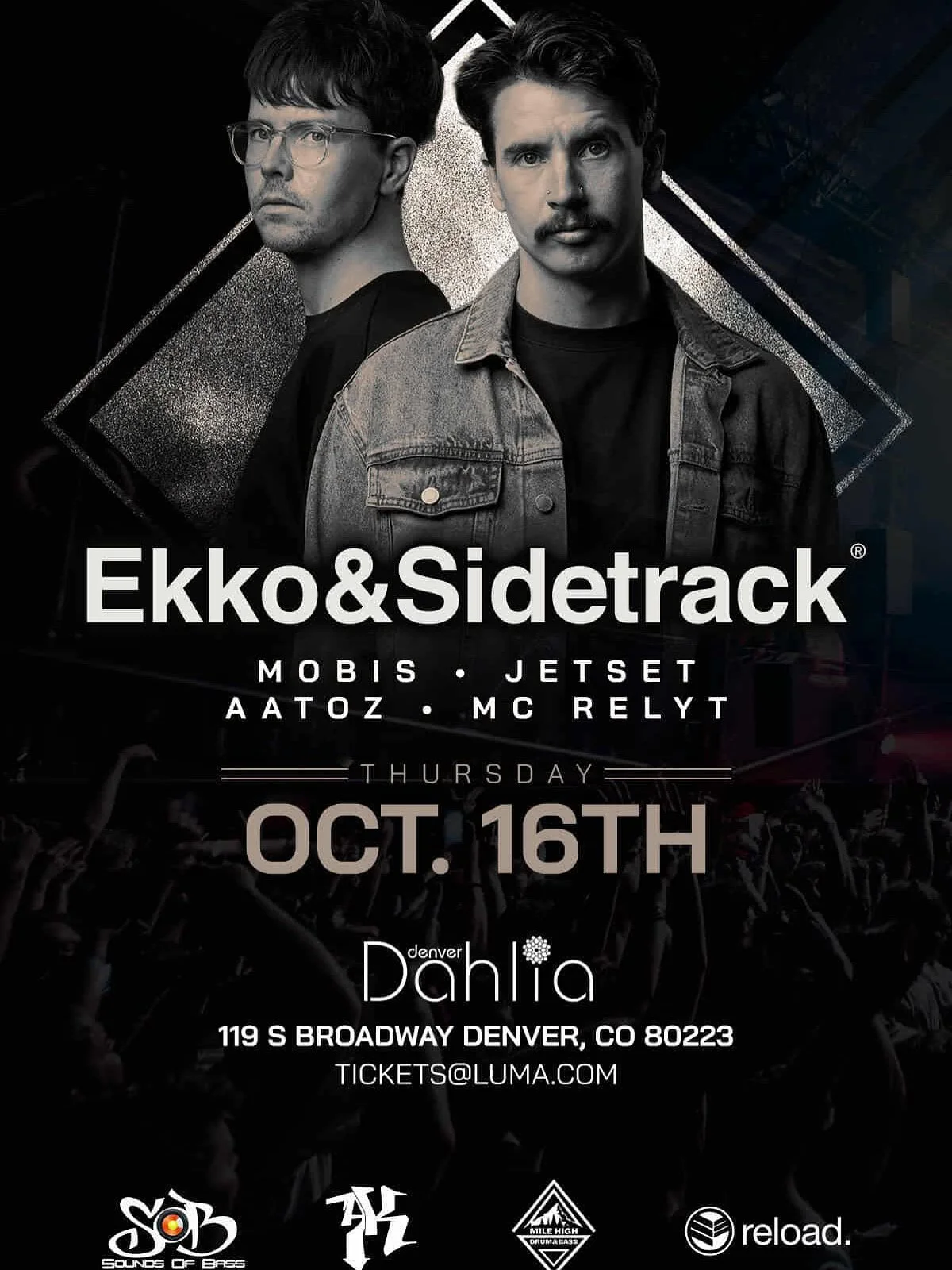 Back to All Events Ekko & Sidetrak Thursday, October 16, 2025 9:00 PM Friday, October 17, 2025 2:00 AM The Dahlia (map) Google Calendar ICS GET TICKETS